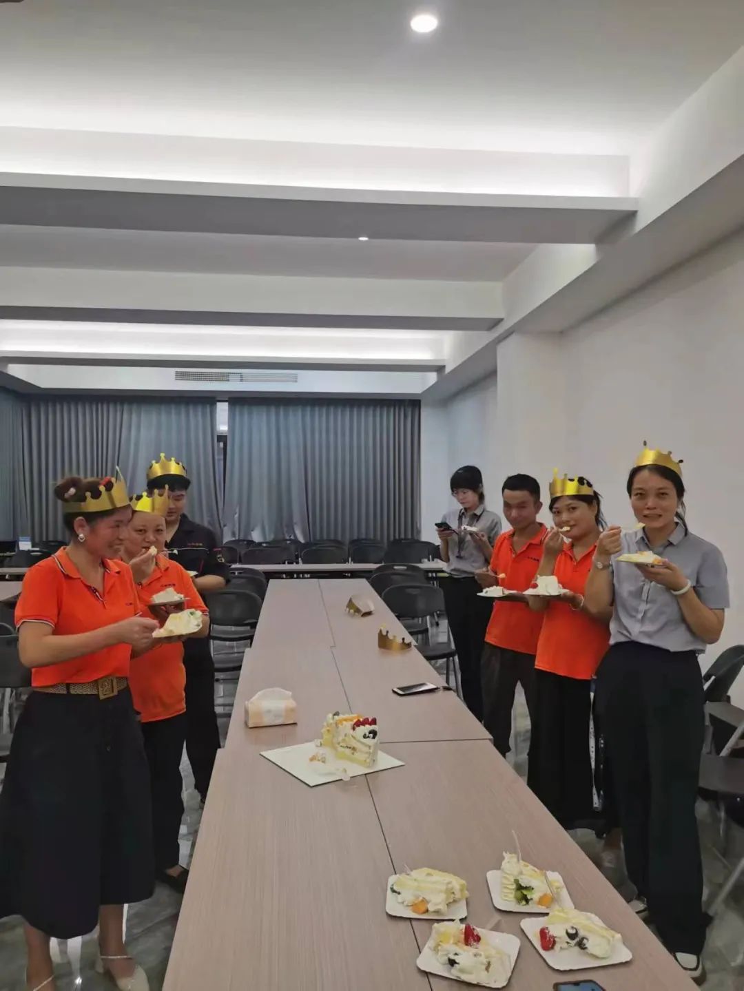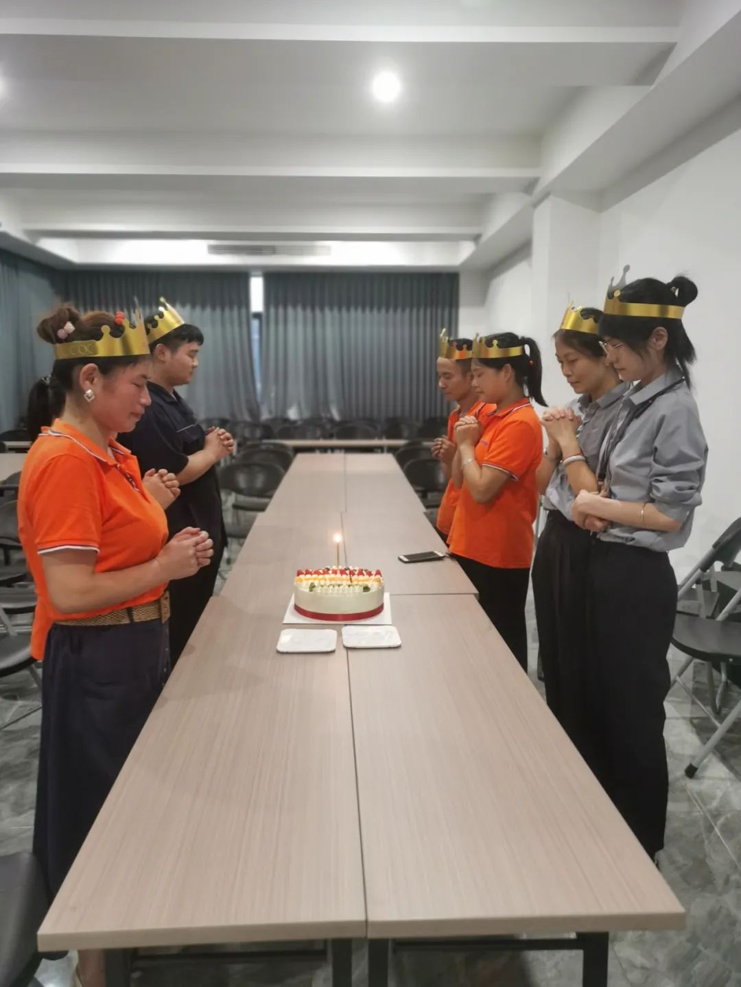 公司為過(guò)生日的伙伴們準(zhǔn)備了蛋糕。來(lái),點(diǎn)上蠟燭,我們閉上眼,一起來(lái)許一個(gè)愿望吧!